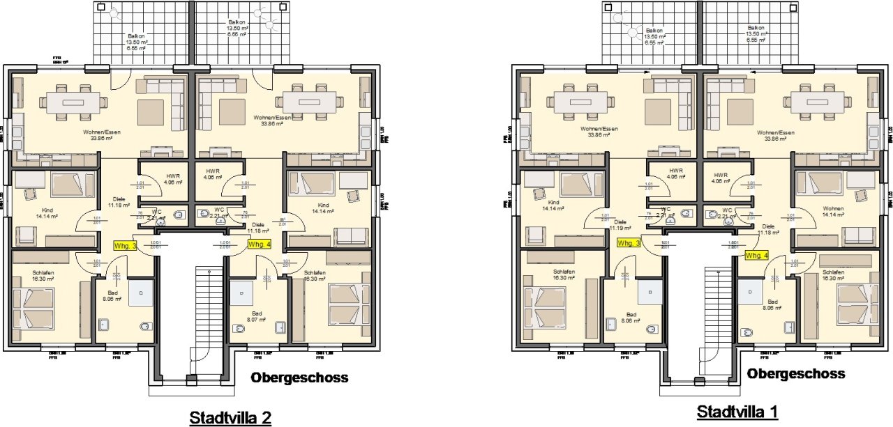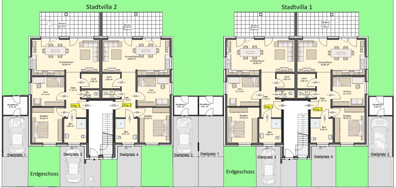 Stadtvilla mit 4 Eigentumswohnungen mit ca. 96 bis 100 m² Wfl.